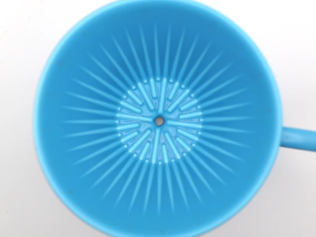 ブルーボトルコーヒーのオリジナルドリッパー、の色違い版です。もともと上海の店舗で限定販売されていたモデルでしたが、オンラインショップで買えました。フラットボトムのモデルの中でもいちばん小さいんじゃないか、というくらい抽出穴が小さいです。ノーマルバージョンも4年前に買って持ってるんだけど、その当時はあんまりいい印象はなかったんだ。でも、挽き目は細め、豆の量は少なめお湯を多めで注いだらいい感じに。これは経験値あがったかな、ってのを実感した1個です。