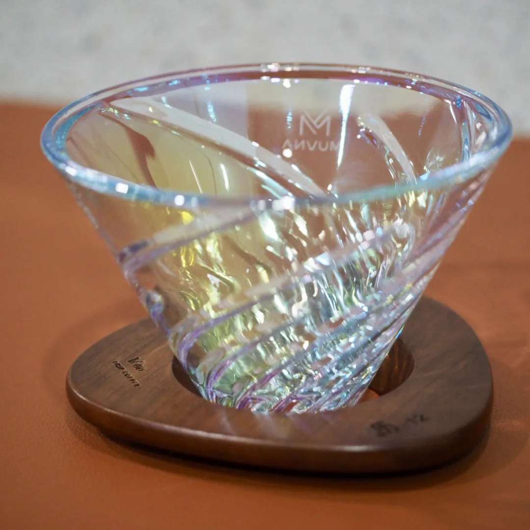 3月に購入したのが中国の新興メーカーMUVNAのガラス製のドリッパー。リブが窪んでいる構造では珍しいガラス製です。また、光の当たり方によって色合いが変わるのも特徴ですね。空気の通り道があんまりないので、お湯抜けはけっこう遅めです。