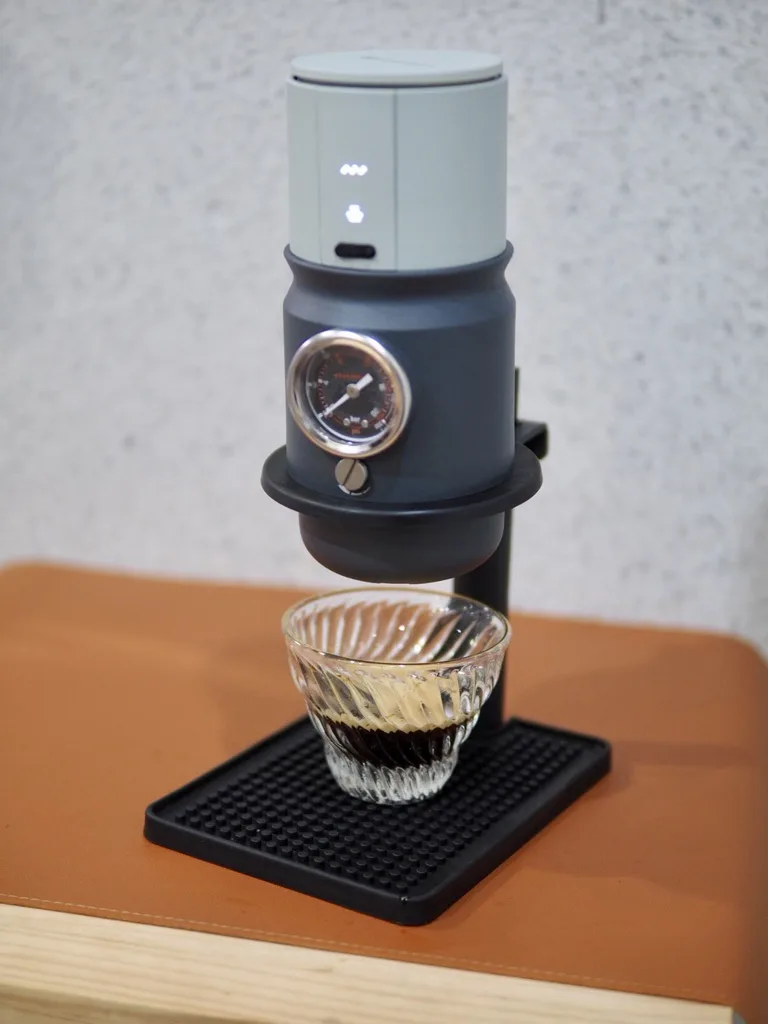 電動エスプレッソメーカーです。58mmのエスプレッソツールが使えるため、私の場合はFlair58用に揃えた道具をそのまま使ってます。準備から片付けまでが早いので、「あ、飲みたい!」って思った時に手軽に淹れられるのが良いです。味はFlair58の方が好みなんですが、特に朝にエスプレッソを飲むならこっちを選びますね。