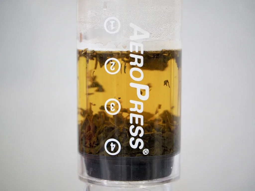 コーヒーではないですが、コーヒー用の器具を使っているということで。エアロプレスで淹れるほうじ茶が好きなんだよねー。特にクリア版だと茶葉の踊る様子が見えるのでさらに楽しいです。片付けも楽なので、夜にさっと飲みたい時はこの方法(インバート)で淹れてます。