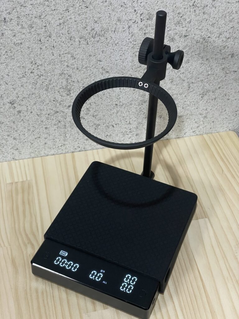 この時期はスケールというとフルサイズのスケールのイメージが強かった記憶。スケールが好きになってきて、スタンドも好きな結果、セットになったBlack Mirror2を導入しました。このスケールは注いだ全量とカップに入った量の2つを同時に見ることができる機能があるスケールです。優秀の割にあんまり出番が少ないのは、数字がめまぐるしく動いて、集中が途切れてしまうから、かな。