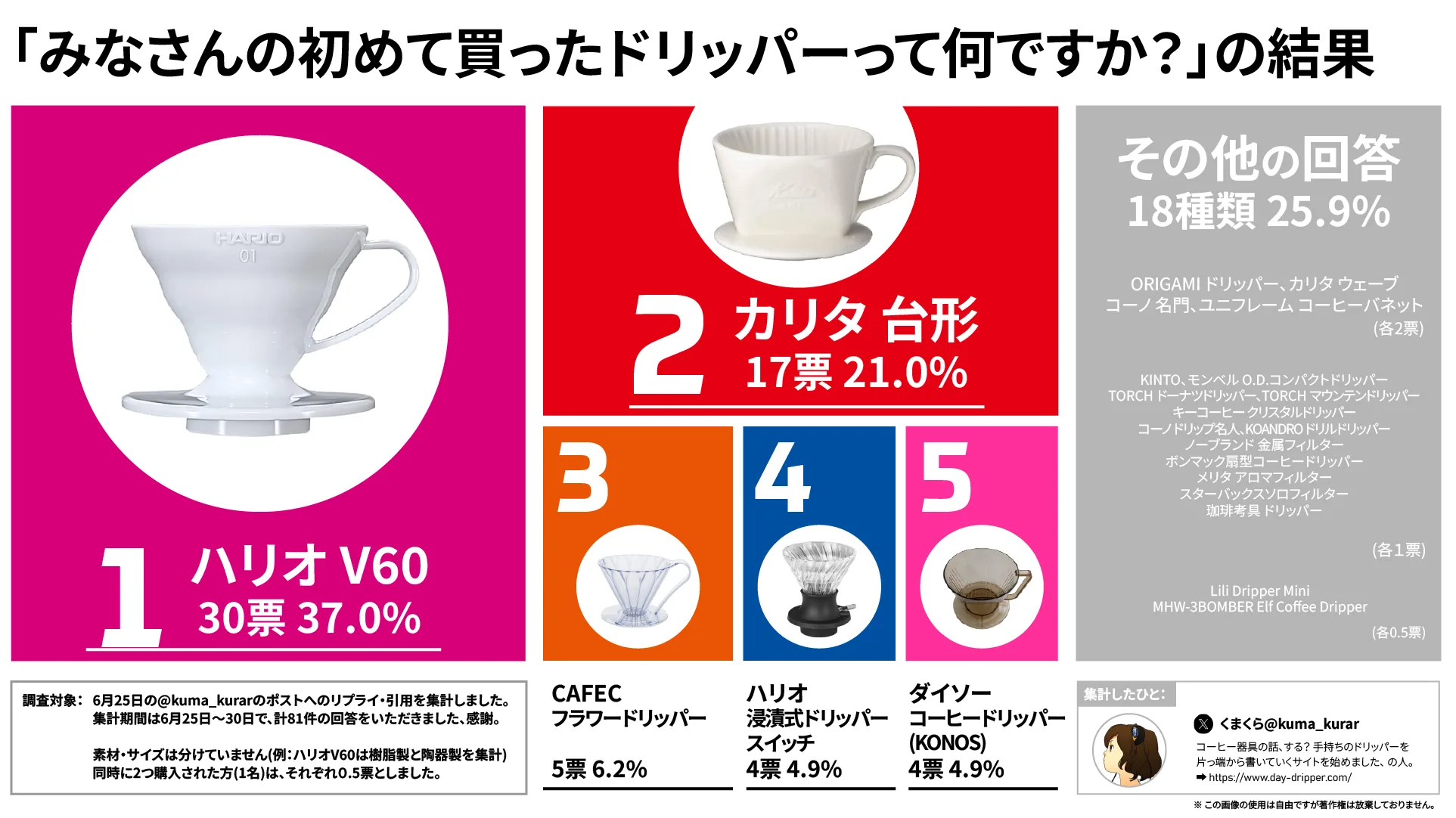 この記事の続きの後編(ドリッパー掲載数が60個になった時かな)では、2022年〜現在までのスケールの変遷をお送りする予定です。