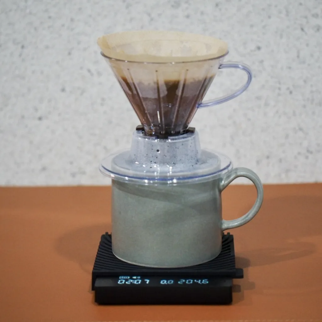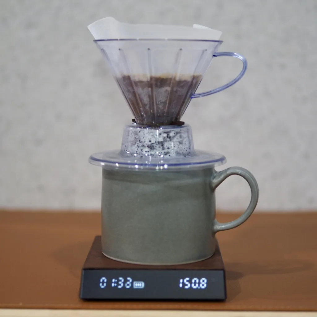 Daiso as the biggest of the 100 yen(0.66 USD/Mar. 2025) shops in Japan, has released several original drippers in the past, I think the Okonomi Dripper is a challenging product. The 100 yen is a great price for a dripper with a variable extraction speed function. The variable lever can be changed during extraction, but it cannot be fully closed, and some leakage occurs. After using it several times, I using a non-woven filter to extract a small amount (10g) of beans. With the non-woven filter, the speed of the fall is too fast, but with the variable lever, I can adjust the speed. That’s nice.