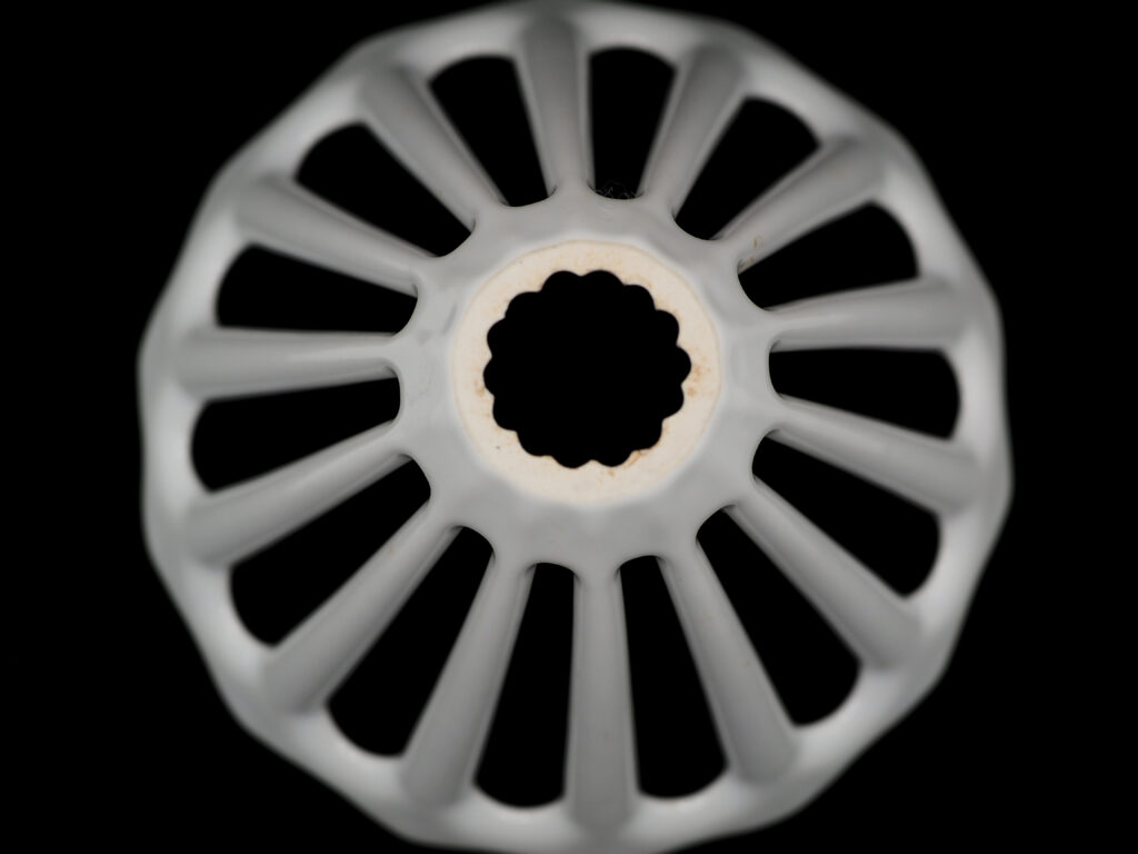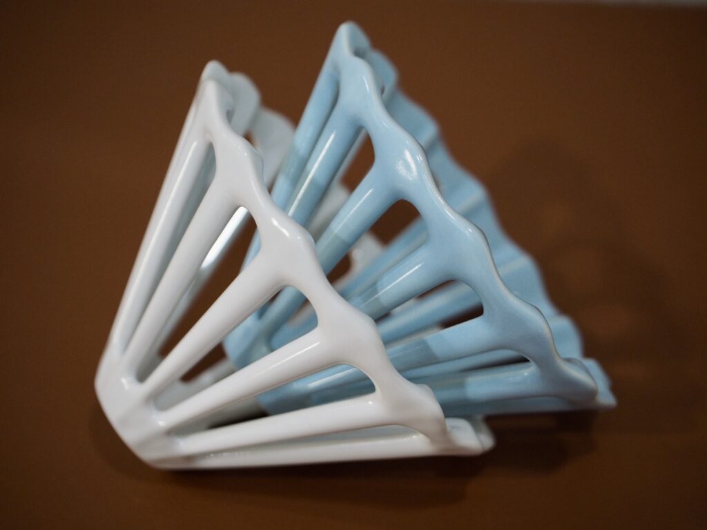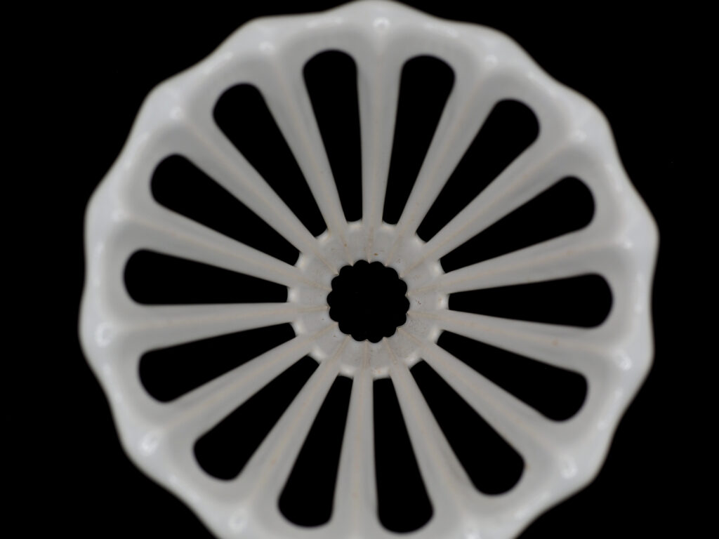 このドリッパーは他に見ない造形のユニークさ、芸術的です。このような形のドリッパーは金属製などで見かけることはあるけど、陶器製で実現するのがすごい。
