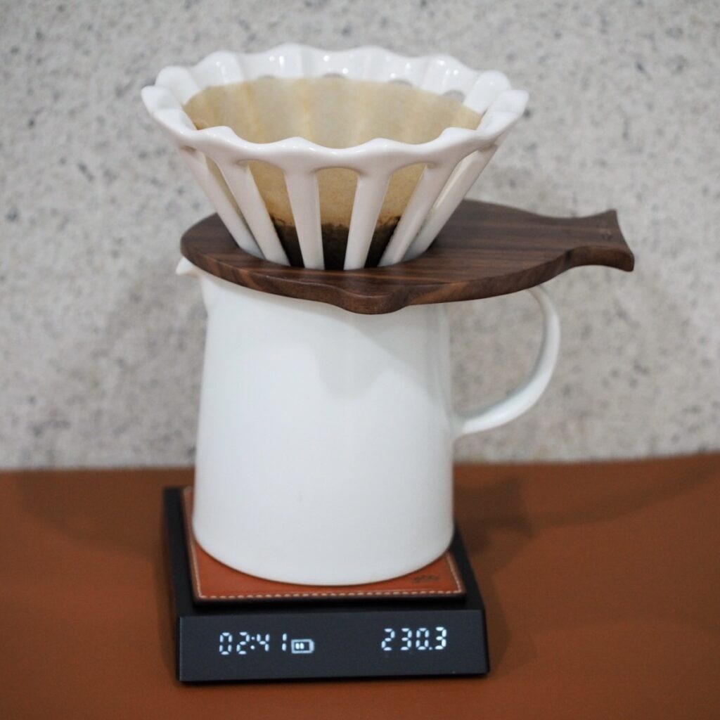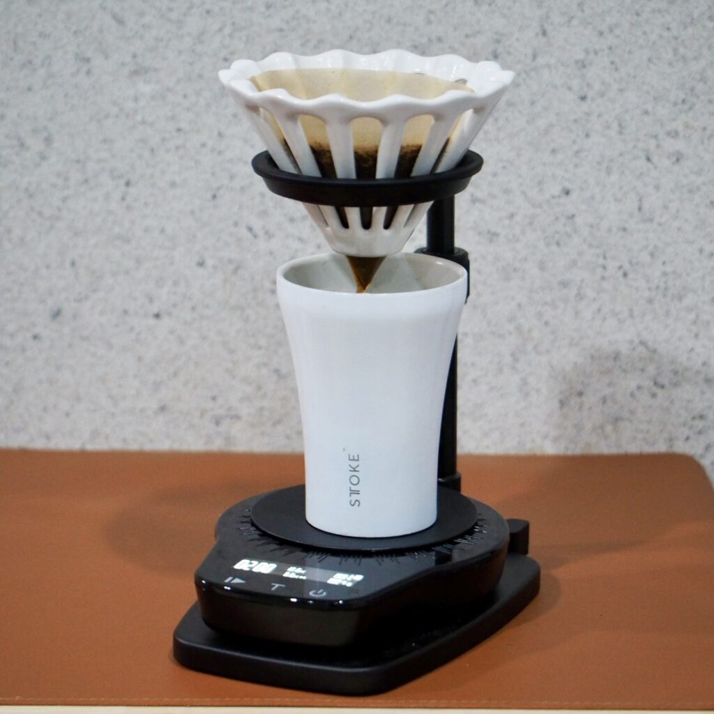 The function of the dripper is to escape carbon dioxide well by hollow shape, and to lower the temperature during extraction. Which is a common benefit. What I really like it is the great atmosphere it creates when combined with the stand and holder. While the design is simple, but it is recognizable as a dripper at a glance, and I like the fact that it has a great visual impact. It is my favorite dripper that I have a lot of feelings about because of the hard work that obtaining it.