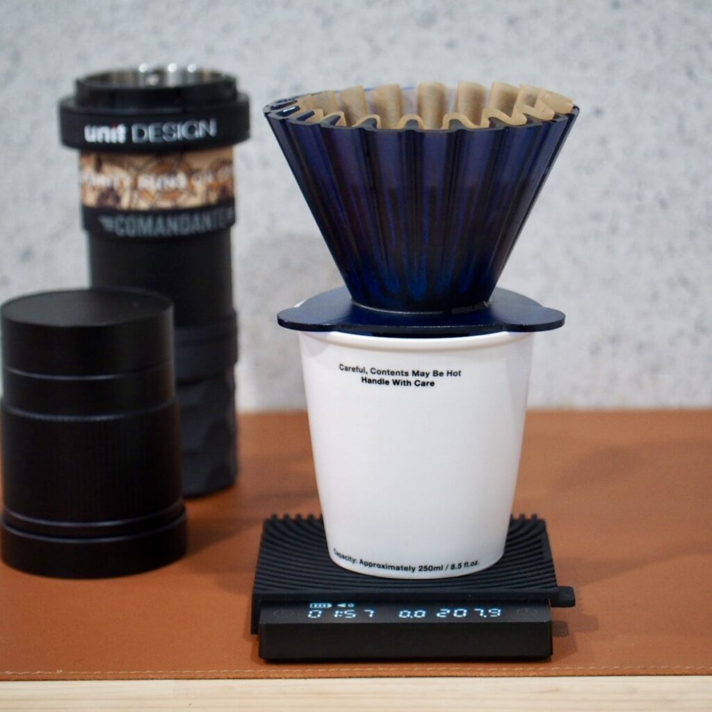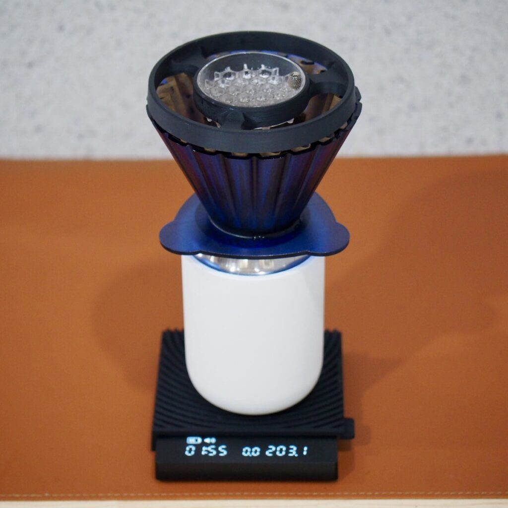 ウェーブフィルターがきれいにハマります。これによってフィルターのヨレがなくなり、コーヒー抽出の際の変数が減ります = 再現性が高くなり、同じ味わいが出しやすくなる、ということですね。