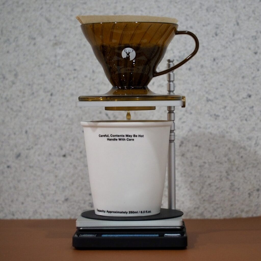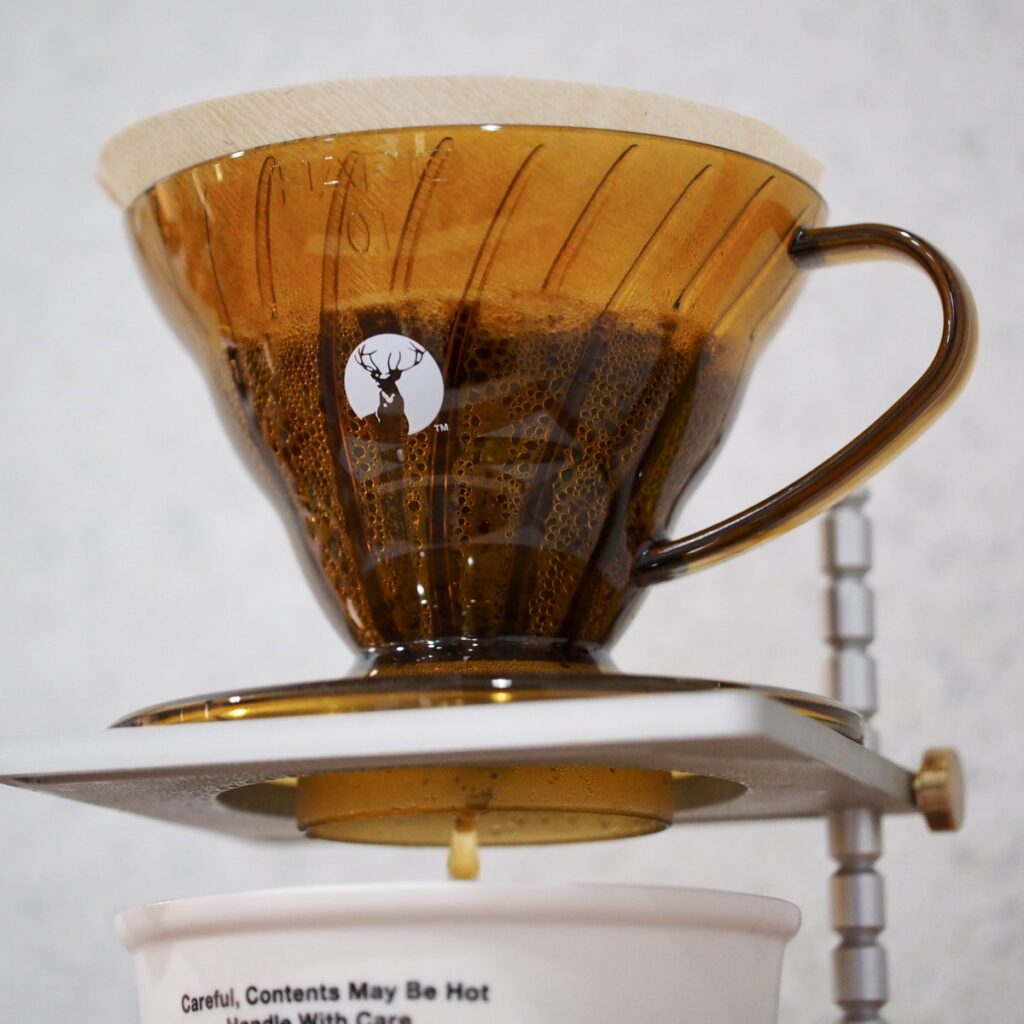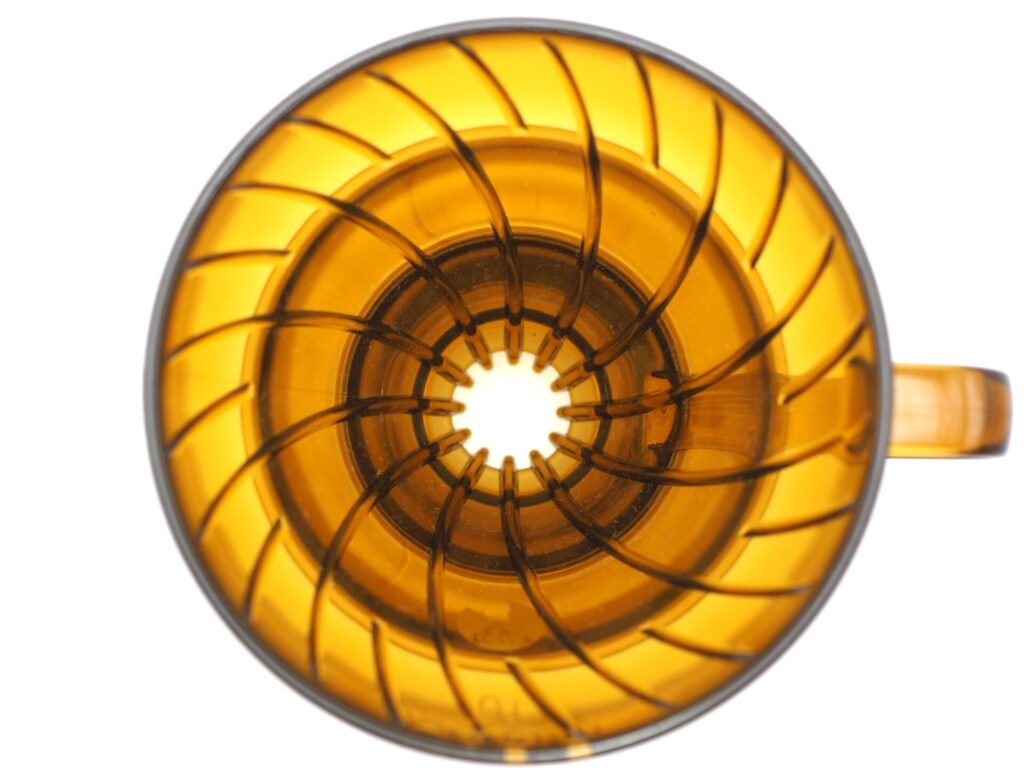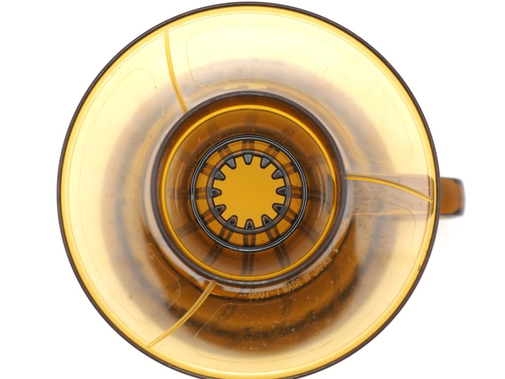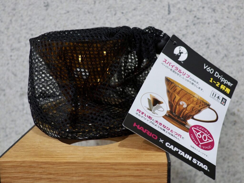 In April 2023, Hario collaborated with outdoor brand Captain Stag to release four types of drippers. One for 1~2 cups and 1~4 cups in clear-colored amber, and olive and khaki made of resin that is not clear. Among them, I thought, “I want this one!” was that clear amber color 1~2 cups.
