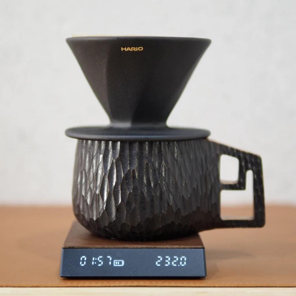 Hario Taiwan has released some drippers ago but they were collaboration with a Taiwanese manufacturer (ex: Aurli) and limited coloring for limited models. This ALPHA DRIPPER is completely original to Hario Taiwan(*). The feature of this dripper is the ribs, which are concave ribs that have become more common in recent years. The concave ribs make it easy for paper filters to stick to it perfectly. Also, the material is rough to the touch; it is by Obsidian rock. I think this material has excellent heat retention properties, so much so that steam rises from the dripper at the end of extraction. It seems to be good for extracting with a fine grind, and because of the aforementioned heat retention, it makes shallow roasting and high temperature extraction better. it is often compared to CT62, but ALPHA DRIPPER is faster and the dripper temperature rises easily, so it is similar but different. The logo may not be properly attached, perhaps due to the material, but I guess that is also a taste.