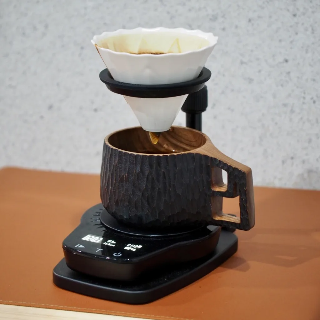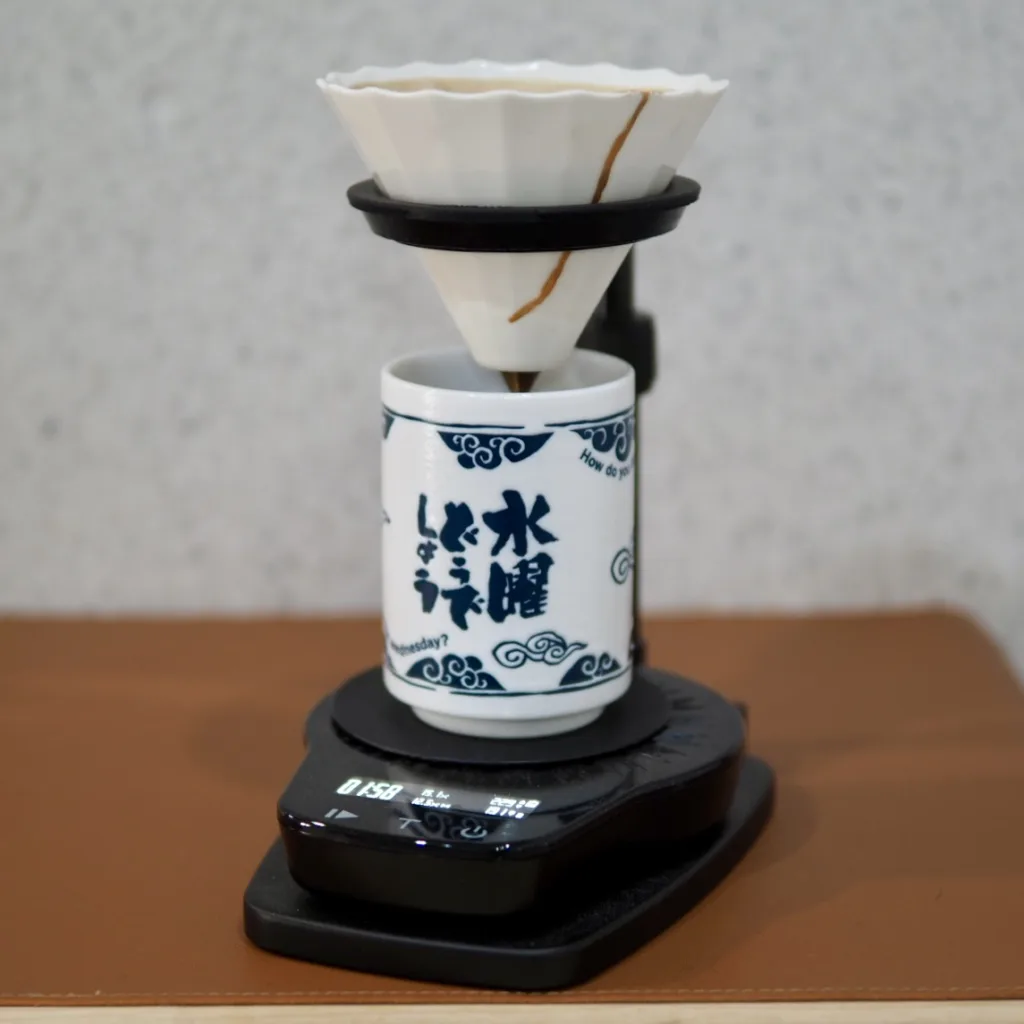 This is a dripper released by HOLZKLOTZ, a Korean coffee equipment manufacturer. I purchased a set that includes a dripper stand and server. I bought a used dripper with chips and cracks at a low price, so I repaired it in a Kintsugi style(Japanese traditional repair method) and use it. The dripper is so thin that you can see through the inside, so it is easy to break if you drop it. Now, the name of the dripper, A27, comes from the 27 “Λ” shapes arranged in a row. The extraction speed is not very fast, so I think I often put coarsely ground medium deep roast. It is also quite cool to use it with a stand of the same manufacturer.