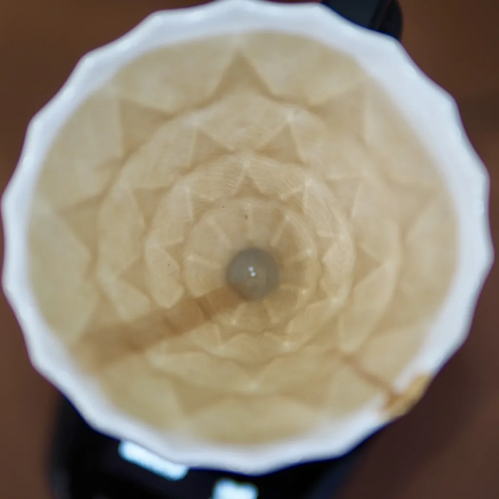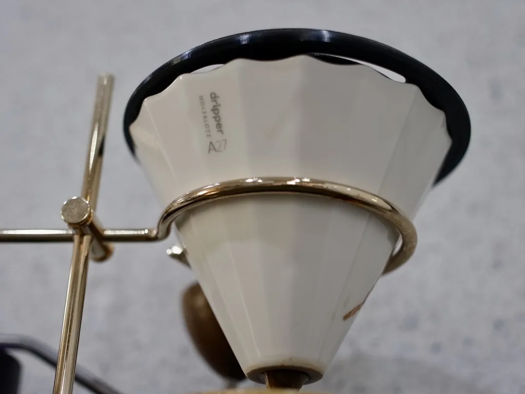 韓国のコーヒー器具メーカーのHOLZKLOTZが発売したドリッパーです。ドリッパー単体でも販売していますし、わたしはドリッパースタンドやサーバーとのセット品を購入しました。中古のドリッパーに欠けとヒビが入った状態で安く購入したので、金継ぎ風に補修して使ってます。ドリッパーは内側が透けるくらい薄い作りなので、落としてしまった際は壊れやすそうです。さて、A27というドリッパーの名前は、「Λ」の形が27個配置されていることからです。抽出速度はあまり早くないです、なので中深煎りを粗く挽いて入れることが多いかな。同メーカーのスタンドと合わせて使うのも、なかなかかっこいいです。