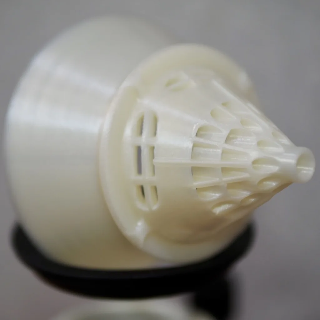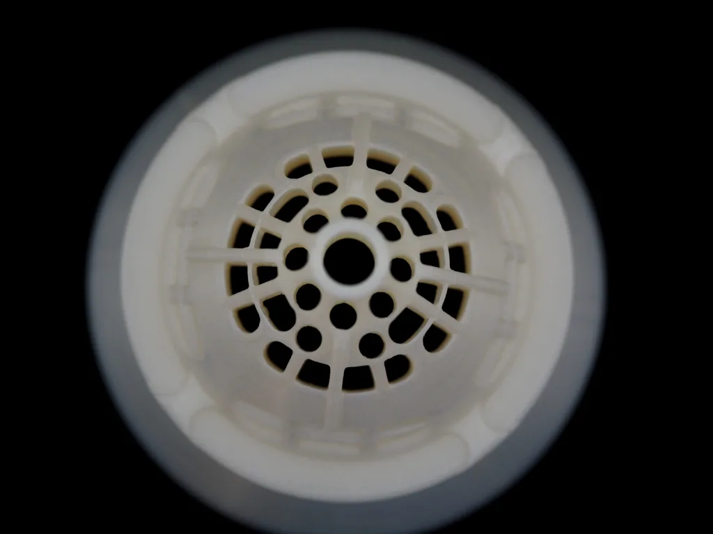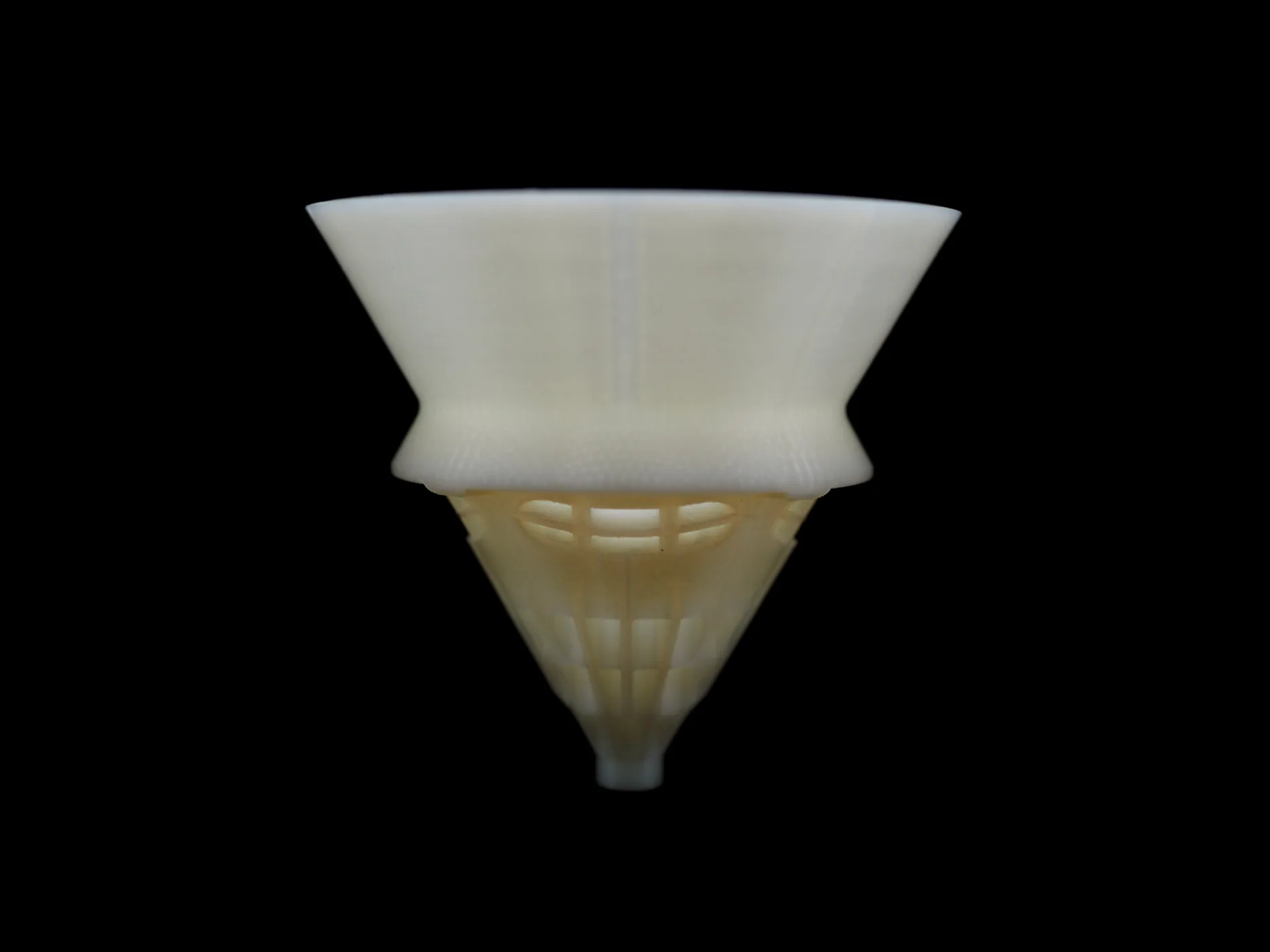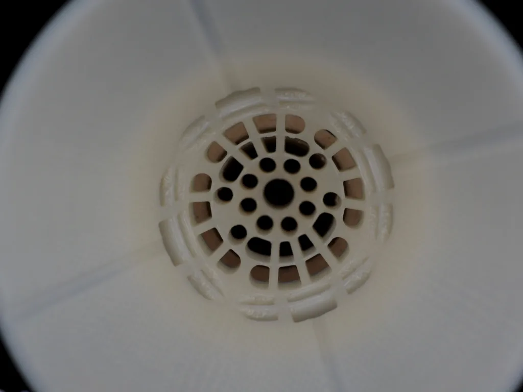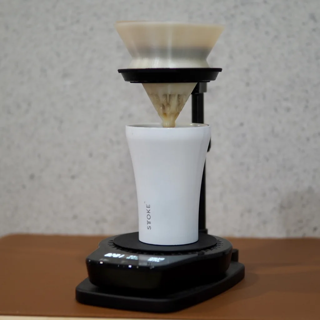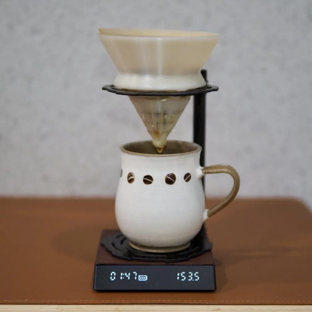 This is a 3D printed dripper with a unique shape. It has a large number of holes, which are not found in other drippers. This allows the liquid that stays on the underside of the dripper to quickly drop into a cup or server. Unlike the unique feature around the extraction hole, the ribs on the dripper are simple, with only four vertical ribs(like MUGEN and SD1). However, the direction of extraction is quite different with MUGEN and SD1.