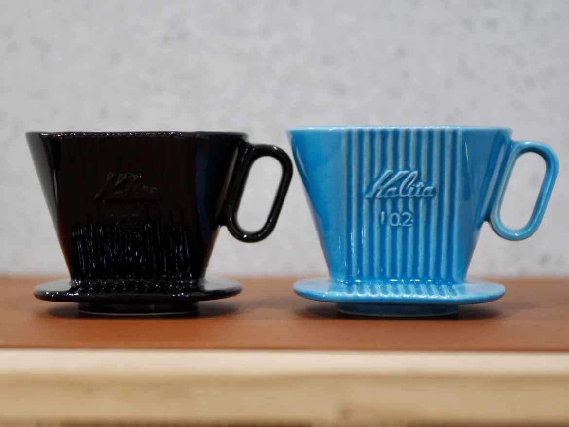 This is a dripper that Kalita sold in the 1990s(probably). When I acquired it, the details were unclear, but an expert told me that name of dripper. It is a bright light blue, with a unique handle and even more unique ribs on the inside (the horizontal ribs resemble the stitching on a baseball). The measuring spoon that came with it has the same shape as products released in 1993, so I am making a rough guess that it is from around that time.