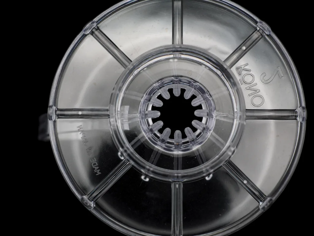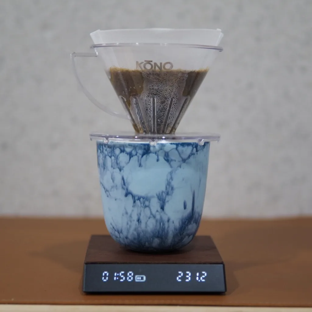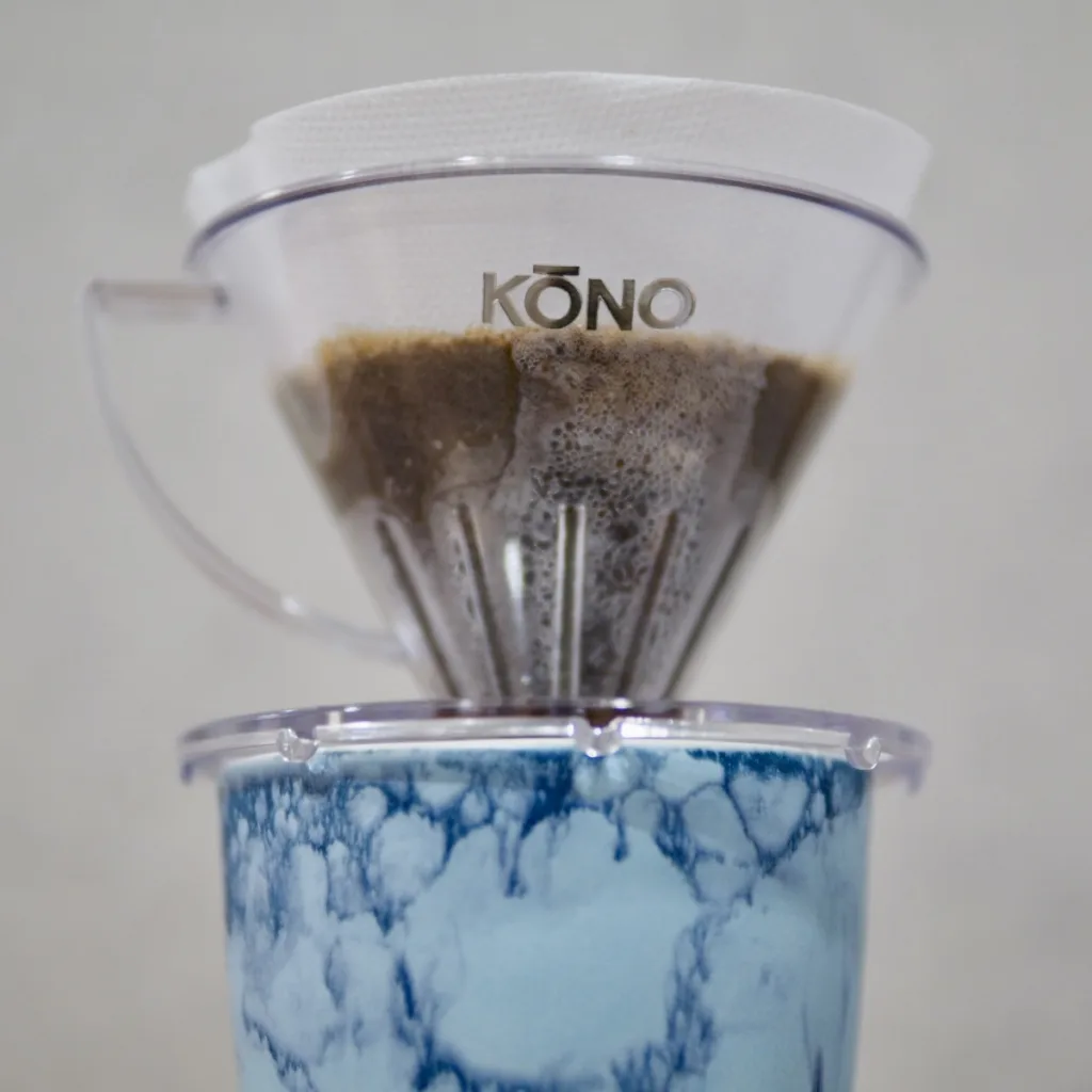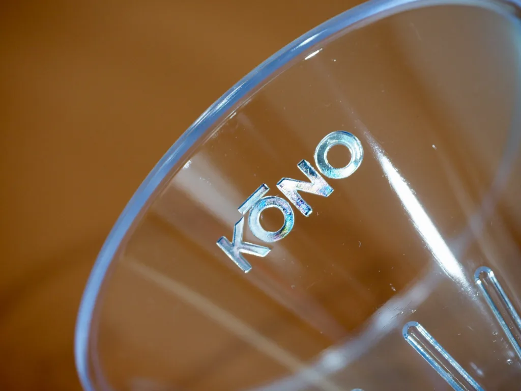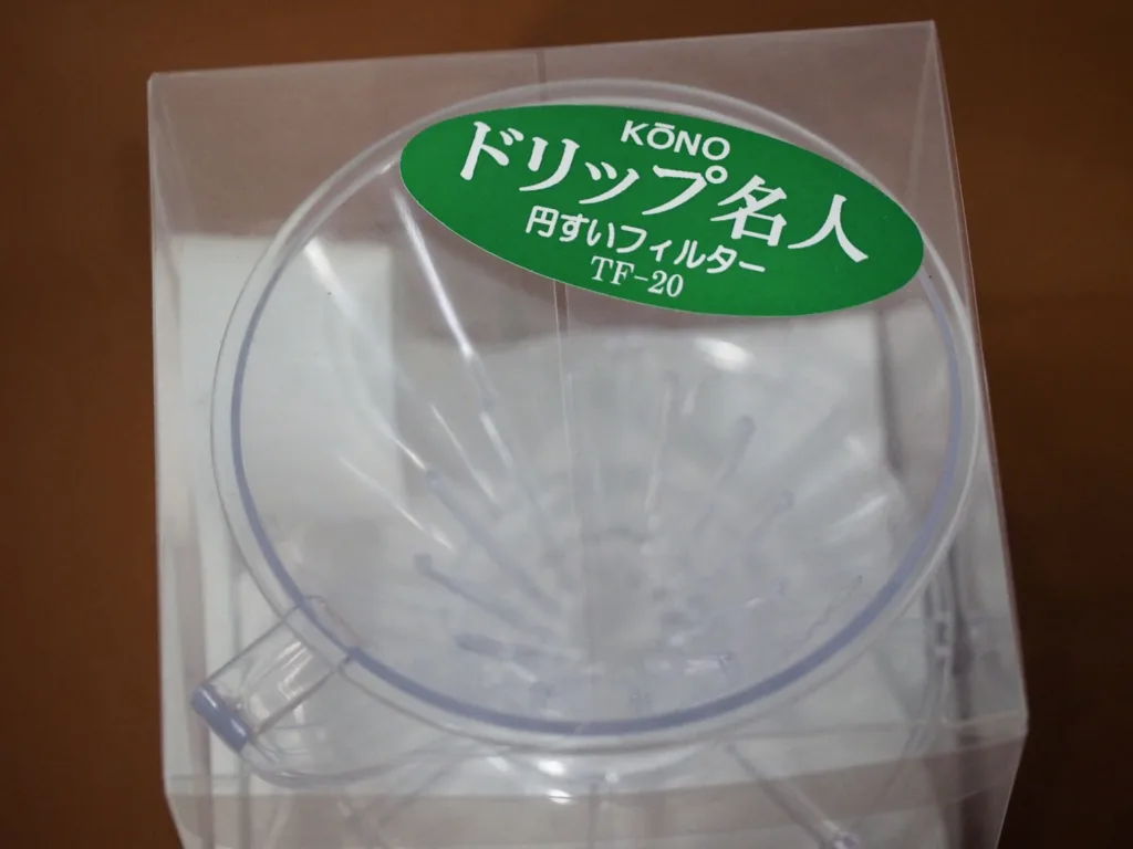 This is a Kono’s discontinued product. The shape is similar to the Meimon Filter, but there are three differences: the material is the same plastic, but the Drip Meijin is made of AS resin (heat resistant to 92°C), while the Meimon Filter is made of acrylic resin (heat resistant to 90°C). The Drip Meijin has a higher heat resistance temperature, but the Drip Meijin has a much thinner dripper. Another difference is the height of the ribs, which are a few millimeters higher on the Drip Meijin than on the Meimon filter. The Meimon seems to be better if you are pouring like a intravenous, but the Drip Meijin is easier to brewing for normal brewing.