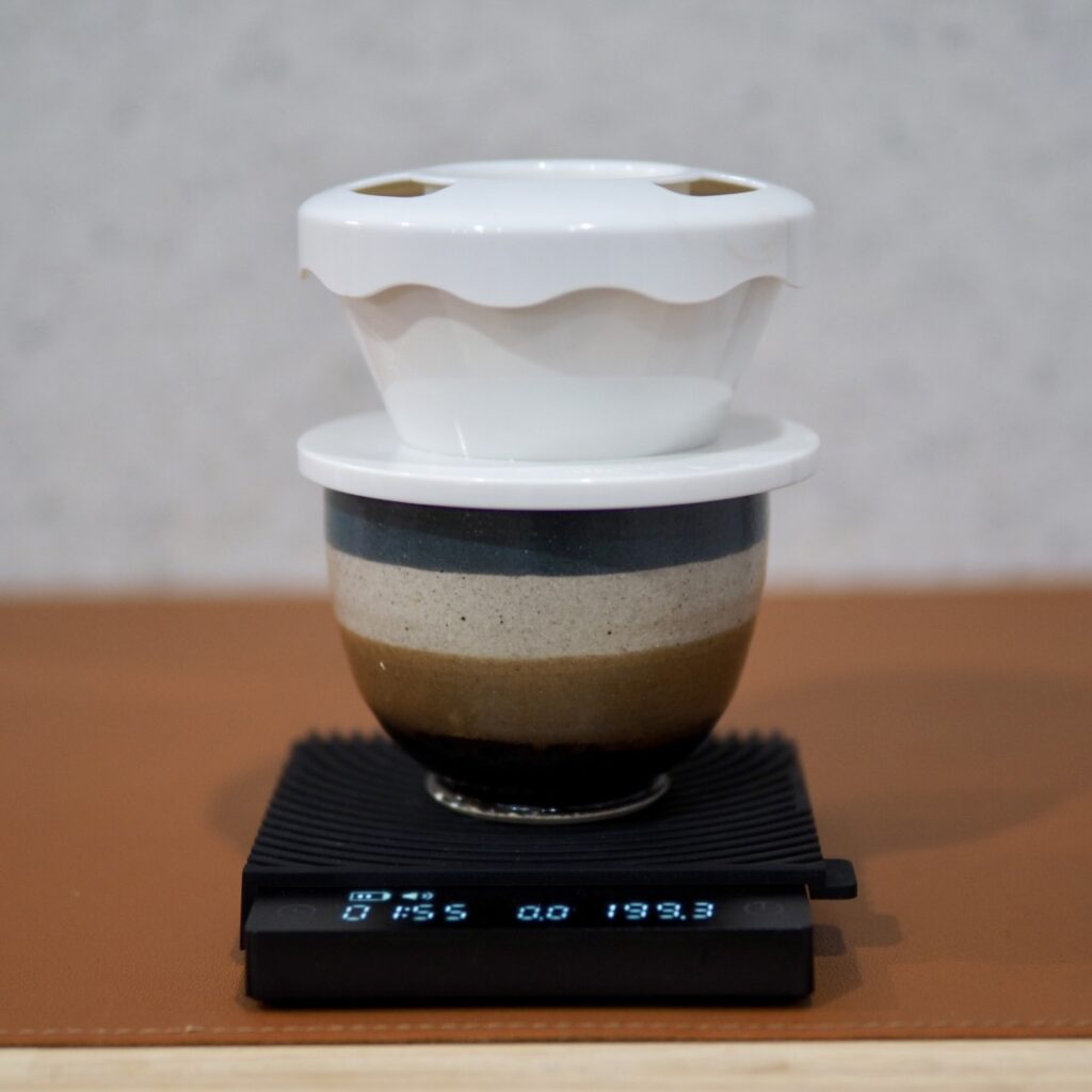 This dripper comes with a lid and drip assist, and brewing is simply pouring into the drip assist’s depression. The combination of the wave filter and drip assist makes stable, and does not require kettle control.
