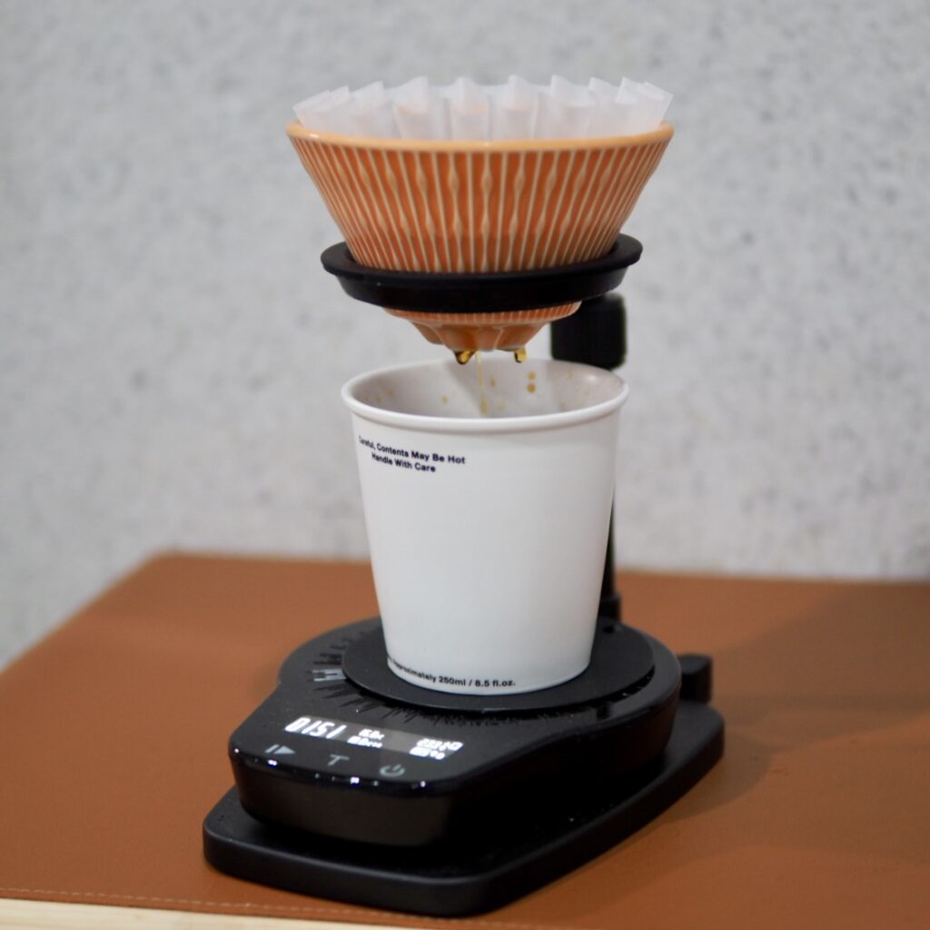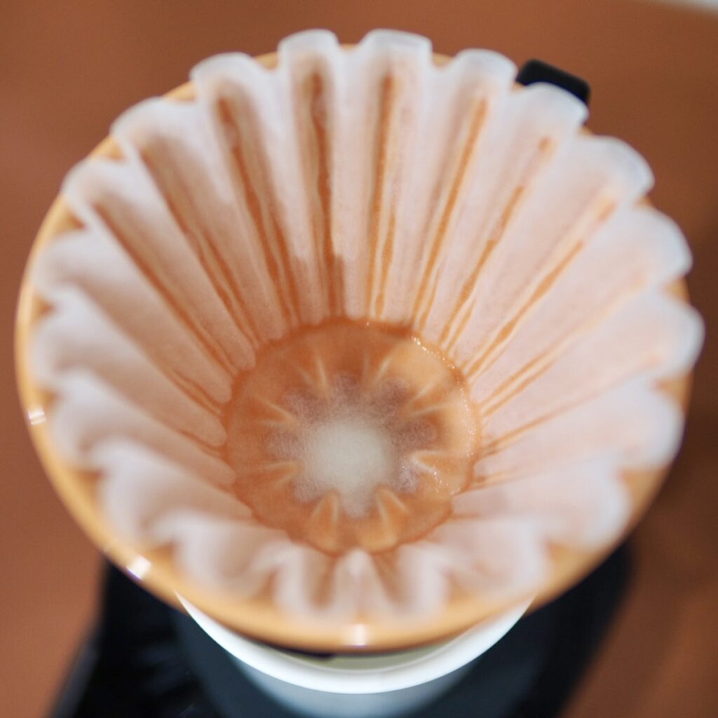 中央に星型の抽出穴が空いています。そして抽出穴には1cm程度の傾斜がついており、この傾斜で抽出スピードは早めではあります。が、最速ではない印象ですね。ただし抽出が一点集中するため、最後半は詰まり気味になります。個人的には中煎りのコーヒーで組み合わせるのが好みです。