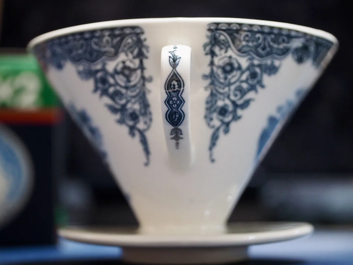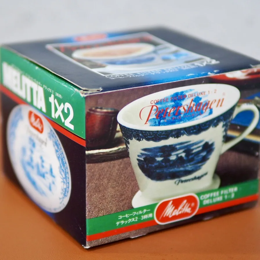 This is a vintage Melitta filter with beautiful decoration. The box says, “Petershagen is a beautiful, high-quality filter that captures the scenery of northern Germany, the home of Melitta.” It dates back to after 1970s. It is probably made in Germany, but since most of the information I found online is in Japanese, I can’t say for sure. The blue-black decoration is exceptionally beautiful, meticulously painted from the exterior and interior of the dripper to the handle. This is more of a work of art than a functional item. It’s one of those drippers that are simply beautiful to display.