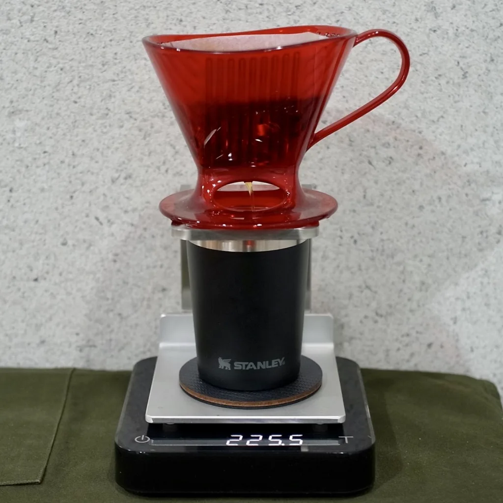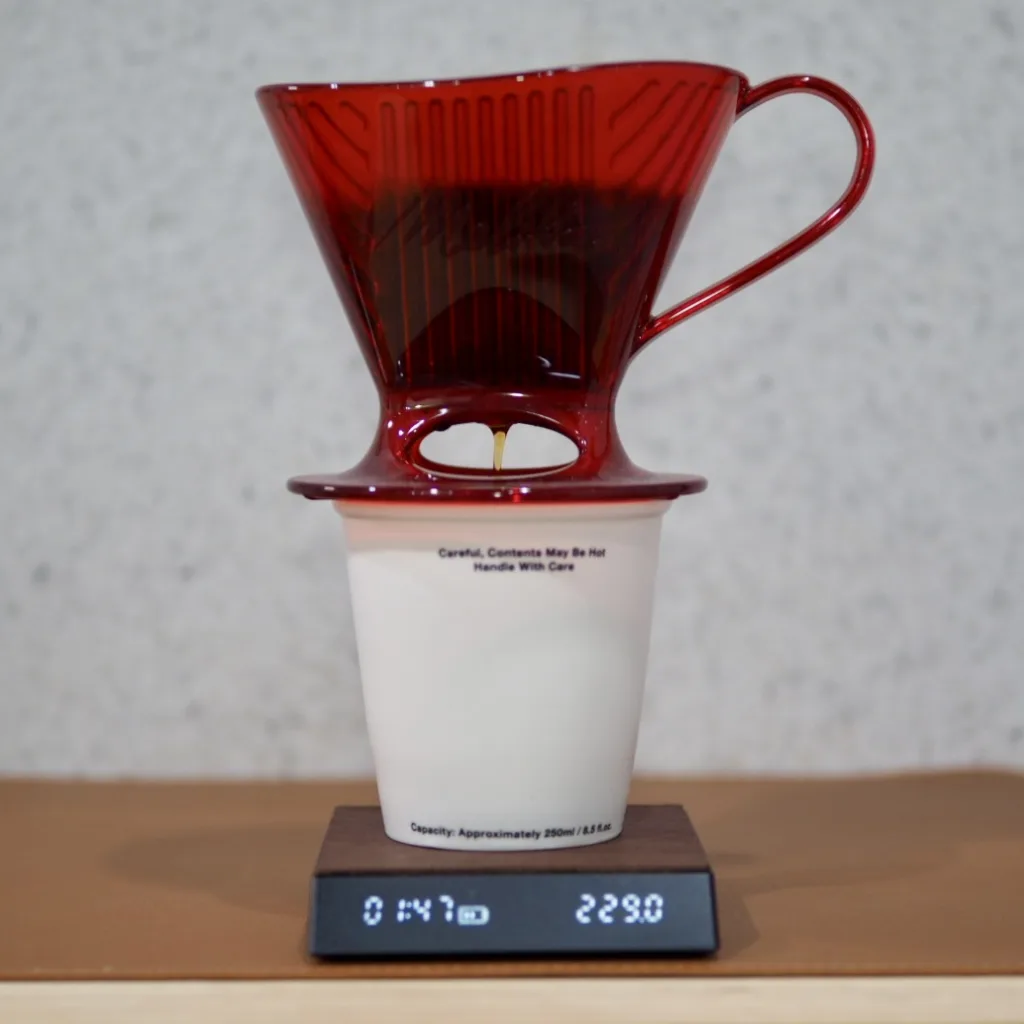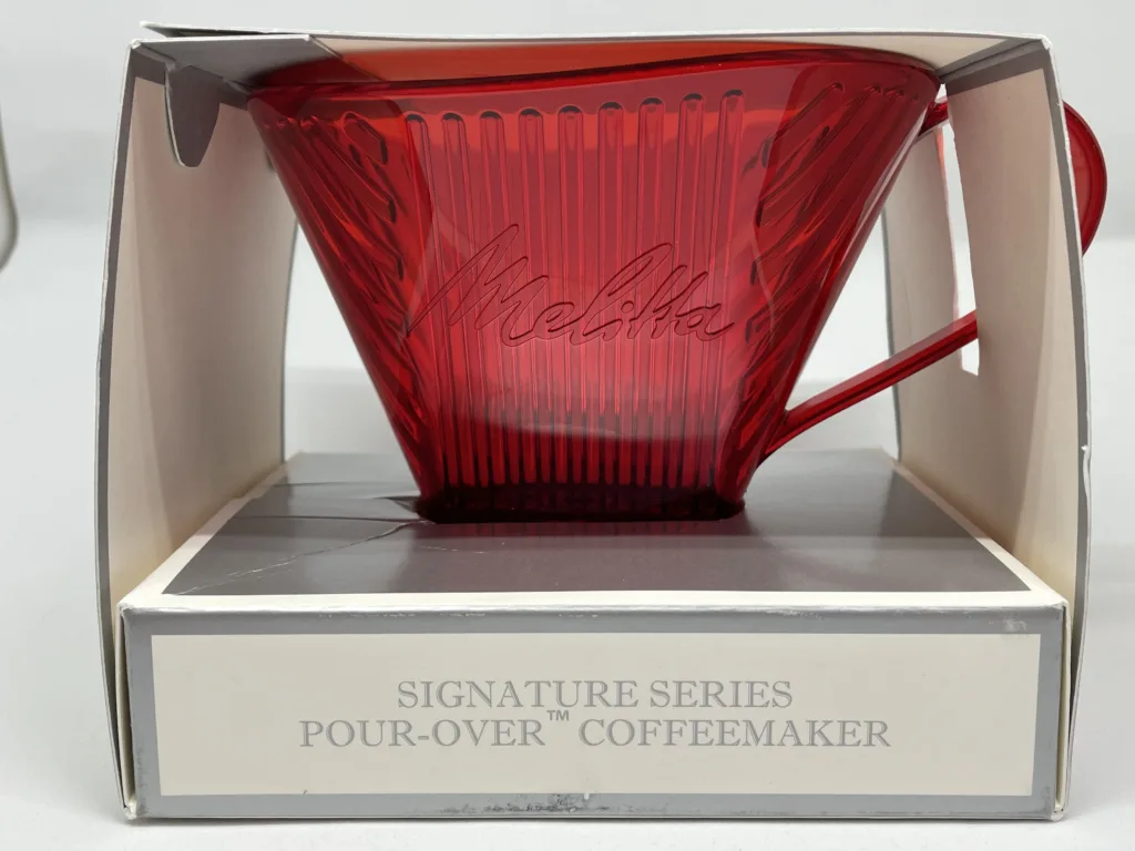 This dripper is made by Melitta USA and is a model of the Signature series, which means “Signature” (meaning “special,” “specially made,” etc.), which means that it is a confident product of Melitta. It has a smooth shape, well-proportioned ribs, and an imposing image. Since Melitta’s extraction is done in a single pouring after steaming, this size allows you to pour hot water in one go without worry. If the size is too large, there is a concern about it tipping over, but since it is made of Tritan, there is no problem! The only thing that bothers me is that the filter is for 2~4 cups even though it is designed for 1 cup. I wonder how many ml is 1 cup in the U.S.?