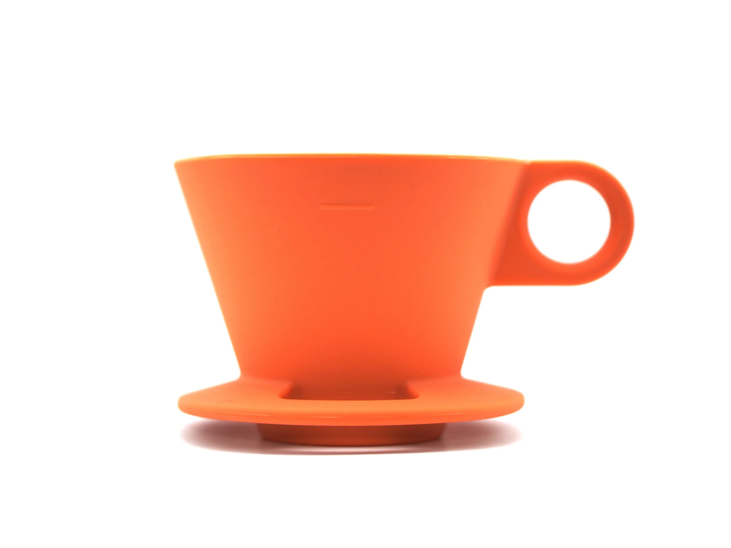 MK STUDIOはデンマークの陶器メーカーです。特にポップでユニークなカラーリングの小ぶりのカップは、いちど見ると欲しくなってしまうプロダクトですね。そんなブランドから発売されているMKドリッパーも、さまざまなカラーや吹きつけなどで作られていて、カップと同様にポップなカラーリングのドリッパーです。ドリッパーの形はスタンダードな印象ですが、外側・内側に丁寧に吹きつけられた模様がオンリーワン感を出していて、所有欲を満たしてくれます。抽出面では底の外側に配置された5つの抽出穴で、少し早めで安定感があります。注いでは落とし切り、また注いでは落とし切り、のような抽出が得意かな、と思いますね。