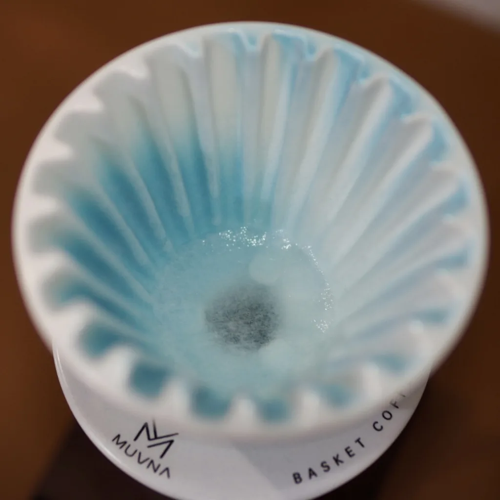 製造はMUVNAという中国のブランドで、コーヒー関連器具(スケールやグラインダーやケトル、エスプレッソのタンパー、カップやパラゴンのような冷やす用途の玉などなど)を、言葉を選ばずに書くと節操なく販売しています。「節操がない」と書いたのは、他ブランドで見かけた商品のブランドロゴ違いのような商品をよく見るから(どちらが先でどちらが後か、ではないです)。そんな中で、MUVNAがオリジナルだと思われるドリッパーを見かけて買ってみました。