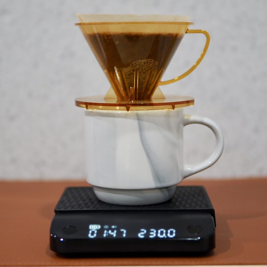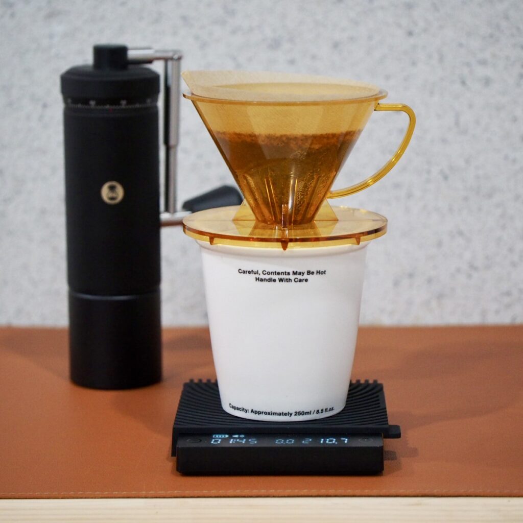 This conical dripper is from the Indonesian coffee equipment manufacturer SUJI Premium Handcrafted. At first from the look of it that comes to mind is,, yes, the KONO Meimon filter. It has been decades years now since they submited the design registration that it is no problem for legally, I think. While those are same the design that the number of ribs, length, and appearance are almost identical. What differenses, there are material, minor differences in the top and holder sections, and the weight (SUJI is about 10g lighter). I have used it quite a bit, but it has not cracked.