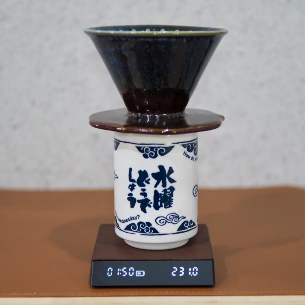 This dripper was made in Yingge, a pottery town in northern Taiwan. It is notable for its unique color, called tenmoku, a pattern famous in Japan for its “tenmoku tea bowl. It gives the impression of a universe that seems to draw you in and is fun to look at. The dripper is 50 degrees, 60-degree filters (for 1 or 2 cups) can be used which is also a good point, and I also thought that the height of the ribs is quite standing and usable. The extraction tends to save up a little, but the large extraction hole rarely clogs. It is a dripper with a unique charm.